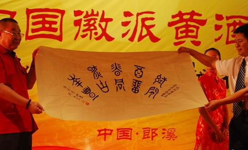 在晚会上,原安徽省军区副司令员刘正宗还向我公司送上了自己的墨宝,带去了他对古南丰的希望与祝福。晚会还举行了“市级非物质文化遗产”授牌仪式,标志着我公司在黄酒事业的征程中,又迈出了新的步伐。县领导邵建华、吕旻、潘双珍现场观看了文化盛典活动。