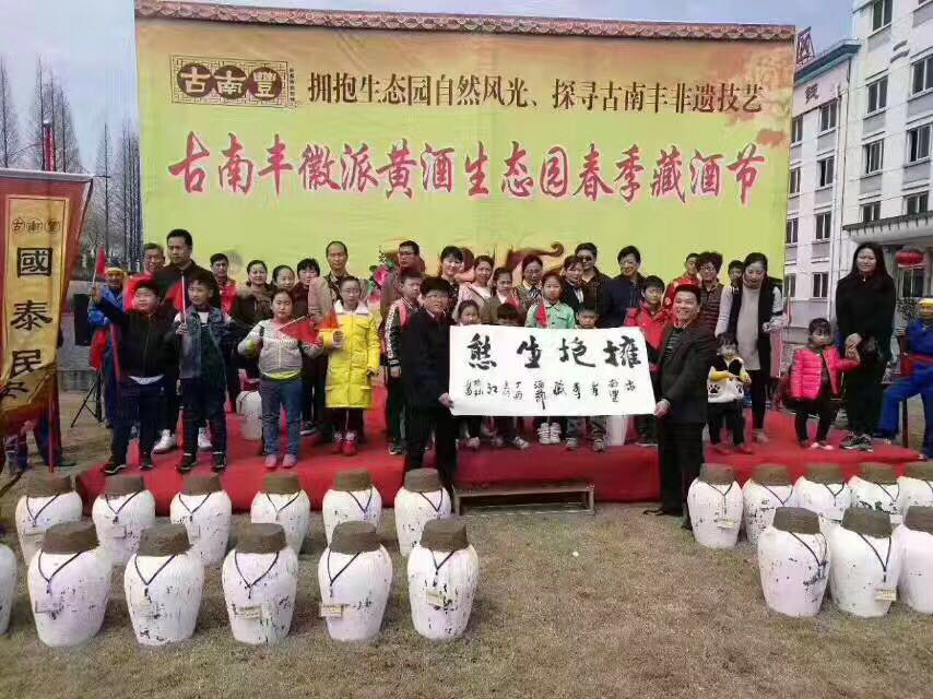 3月11日上午,我公司举办2017年古南丰徽派黄酒生态园春季藏酒节仪式,活动主题《拥抱生态自然风光,探寻古南丰非遗技艺》,本次活动联合郎溪电视台举办,邀请了15组家庭前来参观体验黄酒制作过程;欣赏汉服酒道表演,从验酒、取酒、观色、闻香、温酒、品酒中,学习如何品尝黄酒;投壶、绘坛等亲子互动游戏,让孩子在游戏中体会到创造和成功的快乐,也让家长体会到亲子交流的幸福;藏酒仪式最后,邀请15组家庭共同上台留影、见证2017年古南丰春季藏酒。
